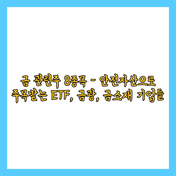 금 가격이 최근 상승세를 보이며, 금 투자에 대한 관심이 높아지고 있습니다. 이에 금 관련 ETF와 금광, 금소재 기업들이 주목받고 있죠. 오늘은 이러한 금 테마 관련주 8종목을 소개해 드리겠습니다.