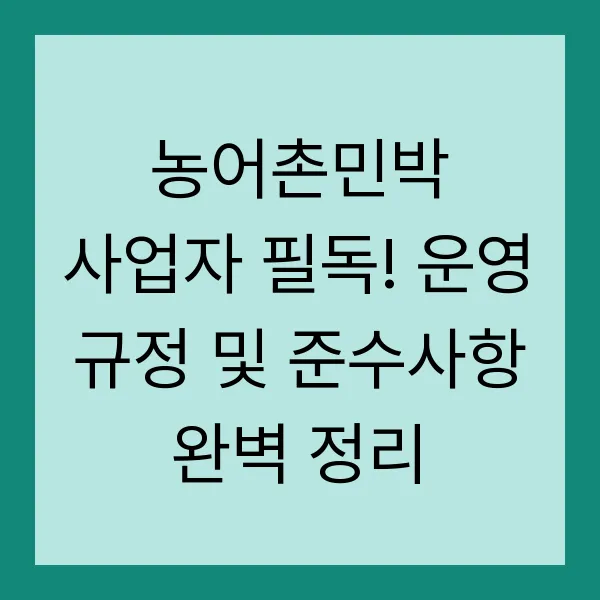 이제 본격적으로 농어촌민박 운영에 필요한 규정 및 준수사항을 자세히 살펴보겠습니다. 법규 위반으로 인한 불이익을 받지 않도록 꼼꼼하게 확인하세요!