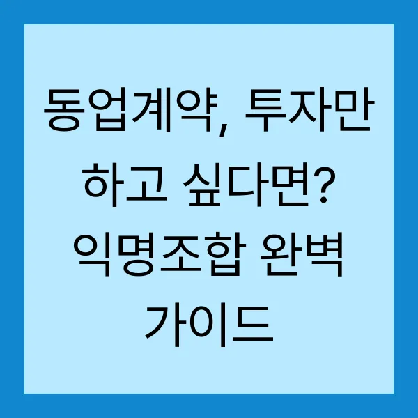 동업계약, 투자만 하고 싶다면? 익명조합 완벽 가이드