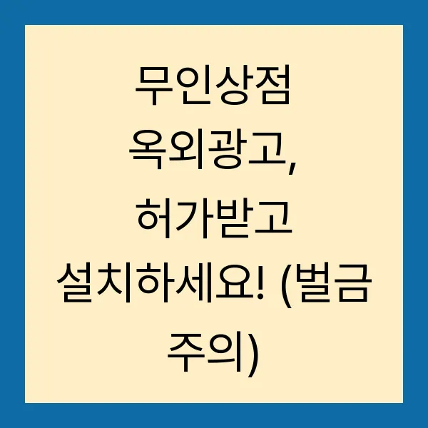 무인상점 창업, 핫하죠! 자유로운 운영과 높은 수익, 꿈만 같습니다. 하지만, 옥외광고는 함정?! 간판 하나 잘못 설치했다가 벌금 폭탄 맞을 수 있다는 사실, 알고 계셨나요? 💸 "이 정도는 괜찮겠지..."라는 생각은 금물! ⛔ 무인상점 옥외광고, 허가받고 설치해야 성공적인 무인상점 운영의 첫 단추를 제대로 끼울 수 있습니다. 지금 바로, 옥외광고의 모든 것을 파헤쳐 보세요!🔍 (무인상점, 옥외광고, 간판, 허가, 신고, 벌금, 과태료, 법규, 절차, 광고물)