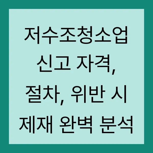 저수조, 우리 생활에 없어서는 안 될 물을 안전하게 보관하는 중요한 시설입니다. 하지만 관리가 소홀하면 각종 세균과 오염물질로 인해 수질이 악화될 수 있다는 사실, 알고 계셨나요? 😥 그래서 필요한 것이 바로 '저수조청소업'입니다! 오늘은 저수조청소업을 시작하기 위한 모든 것, 자격 조건부터 신고 절차, 그리고 위반 시 받게 되는 제재까지 꼼꼼하게 파헤쳐 보겠습니다.