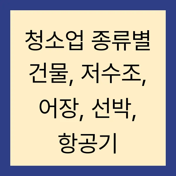 청소업 종류별 건물, 저수조, 어장, 선박, 항공기